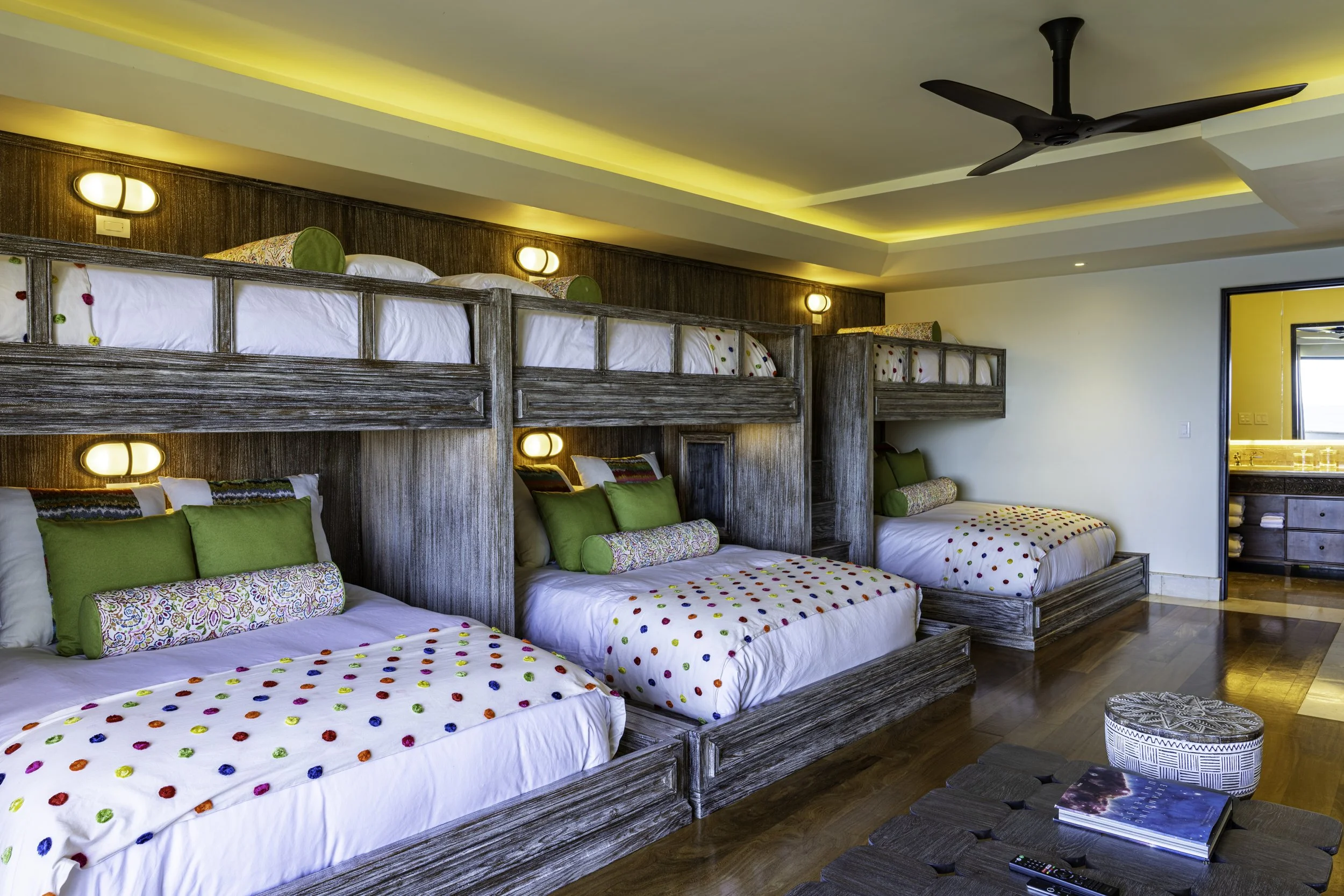 Six of our signature suites—The Alberti, Royal, Vista, Flamingo, Pacifico, and Children’s Suite—feature their own ocean-facing private terraces. These serene hideaways are designed for morning coffee, a favorite book, or a sun-dappled nap on gently swaying daybeds as the Pacific breeze moves through the villa’s disappearing walls.